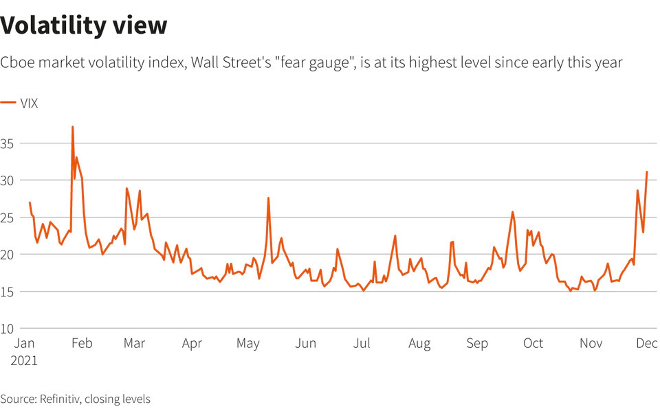 对Omicron变种以及美联储的担忧正在整个资产市场引发波动。由于股价连续几天波动,有华尔街“恐惧指标”之城的芝加哥期权交易所(CBOE)市场波动指数(VIX)自3月以来首次突破30点。