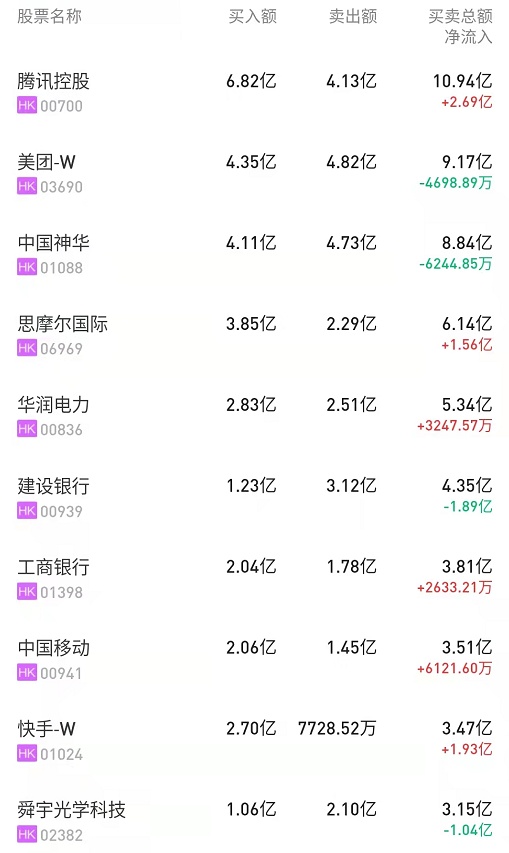 此外,腾讯(00700)、中国移动(00941)、工商银行(01398)分别获净买入2.49亿、6121万、2633万港元。而建设银行(00939)、舜宇光学(02382)分别遭净卖出1.89亿、1.04亿港元。