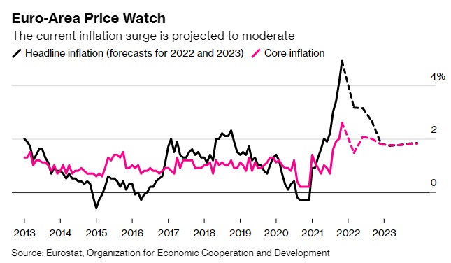 拉加德说:“通胀最终会下降,这是我们对2022年的预测。”“我们相信,我们现在处于通胀的高位,它将开始下降。”