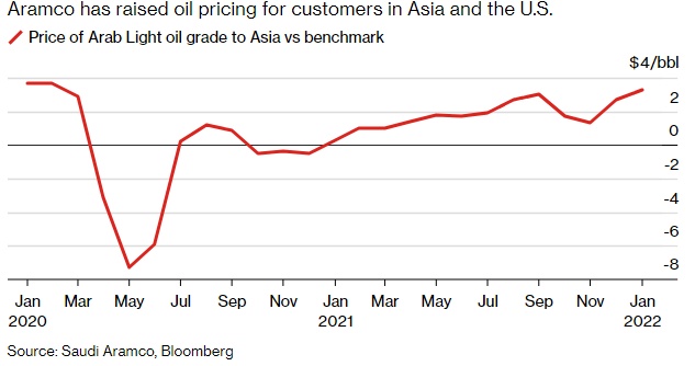 智通财经APP获悉,沙特阿拉伯对亚洲和美国的买家提高了油价,表明尽管新冠病毒Omicron变种正在传播,但市场需求仍将保持强劲。