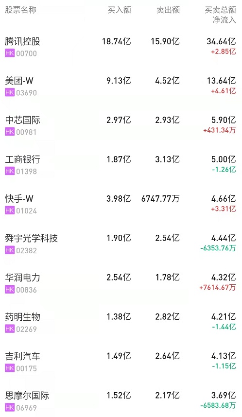 此外,中芯国际(00981)获净买入194万港元。而药明生物(02269)、工商银行(01398)、舜宇光学(02382)分别遭净卖出2.43亿、1.25亿、6353万港元。