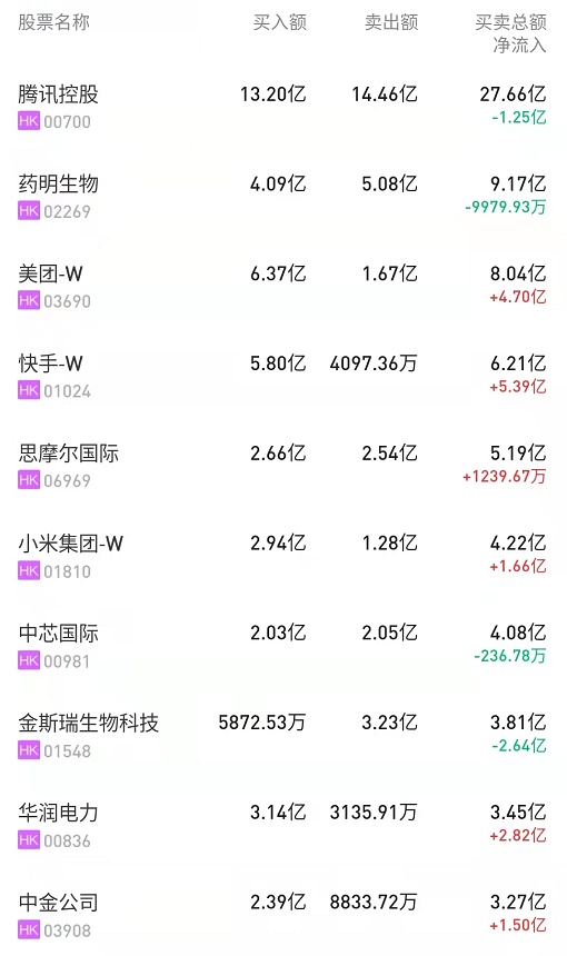 港股通(深)十大活跃成交股