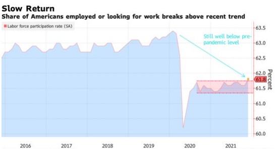 鉴于目前劳动力市场的状况和病毒仍然存在,需要更多的时间才能让工人回到岗位。他解释称,这就是为什么现在控制通胀对他的劳动力市场目标至关重要。美国11月失业率为4.2%,好于市场预期的4.5%,失业率连降6个月,首次恢复到新冠疫情爆发前水平,创2020年2月以来新低。