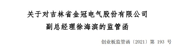 智通财经APP获悉,深交所对吉林省金冠电气股份有限公司(金冠股份,300510.SZ)副总经理徐海滨发出监管函。监管函指出,徐海滨的配偶郭长兴于2021年10月22日、25日通过集中竞价交易方式卖出金冠股份股票116万股,成交金额949.69万元。金冠股份于2021年10月29日披露2021年第三季度报告,郭长兴卖出金冠股份股票时间发生在第三季度报告披露前三十日内,构成敏感期交易。郭长兴未能督促配偶合规交易金冠股份股票,违反深交所相关规定。