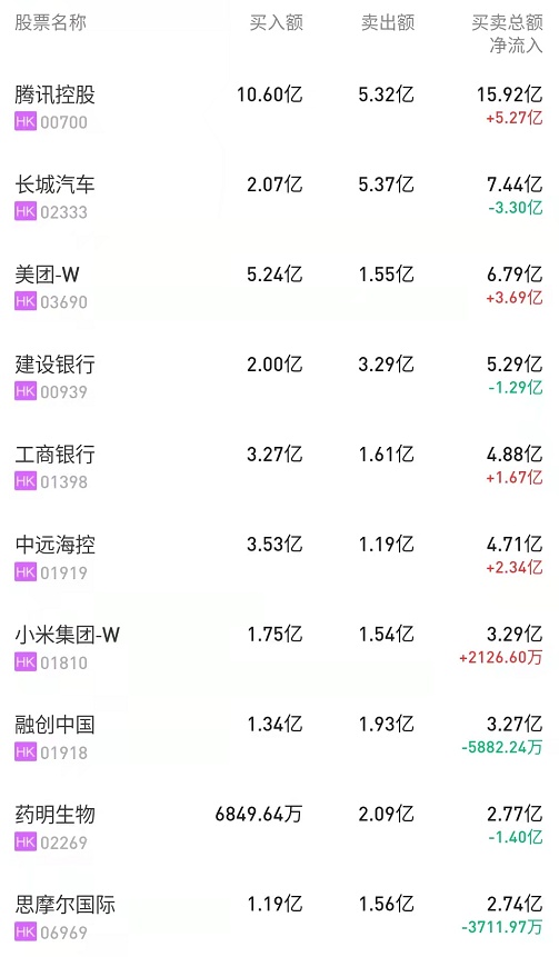 港股通(深)十大活跃成交股