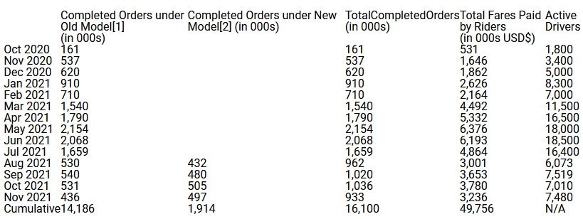 智通财经APP获悉,森淼科技(AIHS.US)公布公司专有网约车平台2021年11月的运营指标。数据显示,2021年11月,受疫情影响,该平台完成订单的数量超过90万,低于2021年10月的逾100万;通过该平台完成订单的司机(即活跃司机)数量为7480人,较上月增长了约7%。