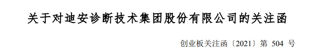 深交所提出,请迪安诊断就上述事项做出书面说明,在2021年12月9日前将有关说明材料报送深交所并对外披露,同时抄送浙江证监局上市公司监管处。