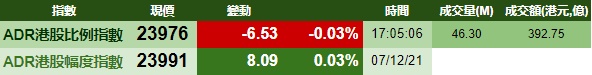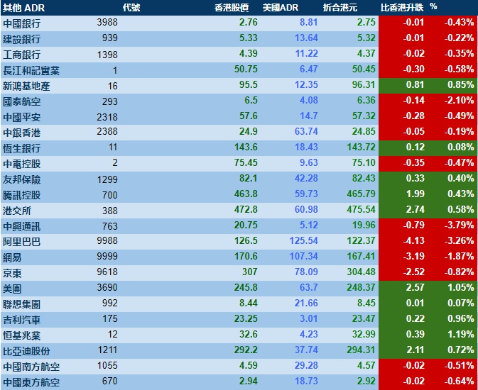 智通财经APP获悉,周二美股三大指数集体收涨,港股ADR指数下跌,按比例计算,收报23976点,跌6.53点或-0.03%。