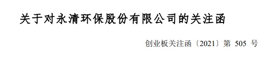 深交所指出,请永清环保就上述事项做出书面说明,在2021年12月10日前将有关说明材料报送我部并对外披露,并抄送湖南证监局上市公司监管处。