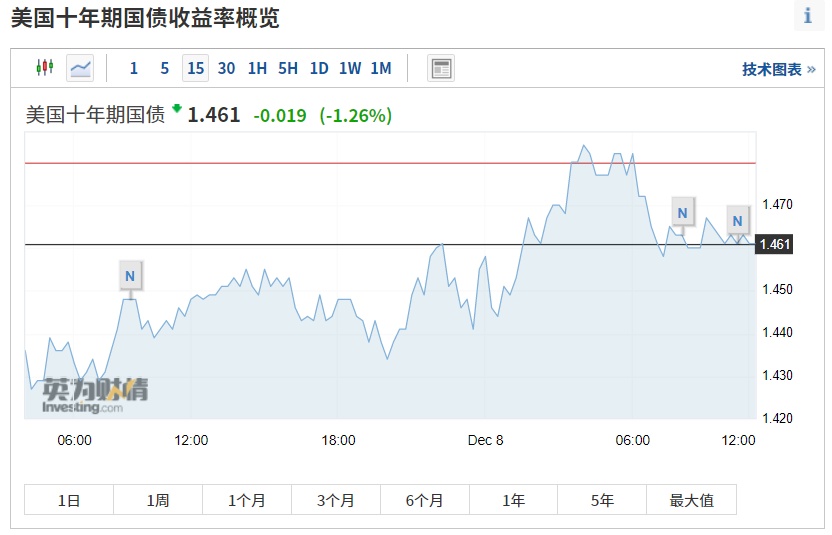 截止发稿,美国十年期国债收益率跌1.26%。
