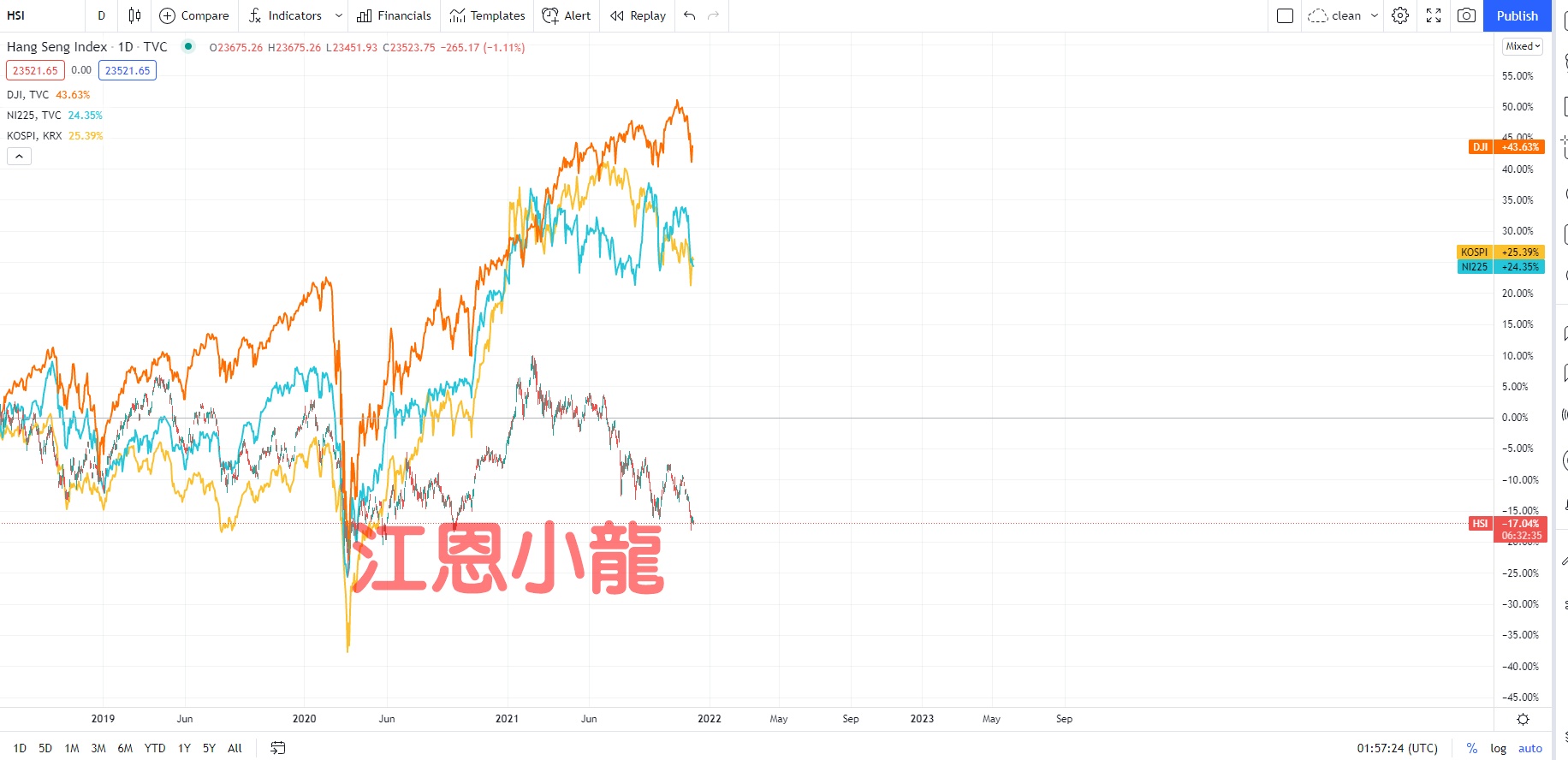 不过读者要留意,上图为道指,韩国指数及日经225的比较,你看港股明显走输。所以笔者讲全球未跌,就港股跌,但当全球跌的时间,那港股会如何?