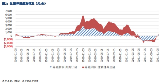 智通财经APP获悉,12月8日,东兴证券发布农林牧渔行业12月投资策略报告称,生猪养殖行业产能去化趋势已经确立,但近期价格反弹带来的补栏提升和二元高繁母猪占比提升带来的养殖效率提高,将延后猪价见底的时间,认为猪价有望在2022年Q2-Q3见底。而板块上涨行情通常会在价格拐点到来的3-6个月之前正式开启。因此判断,2022年上半年生猪板块将正式进入左侧布局时间,建议关注两类企业,优选具备成本优势、现金流充裕的头部养殖企业,在猪价二次探底后建议关注产能储备和估值具备相对优势的小而美成长标的。