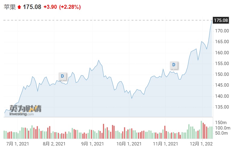 在奥密克戎(Omicron)变异病毒引发全球恐慌之际,投资者押注苹果品牌价值并将其视为相对安全的避风港,推动了苹果这波强劲涨势。