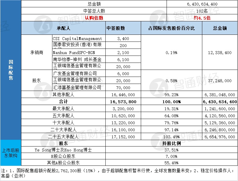 国际配售申购人数未披露,认购倍数约4.5倍。