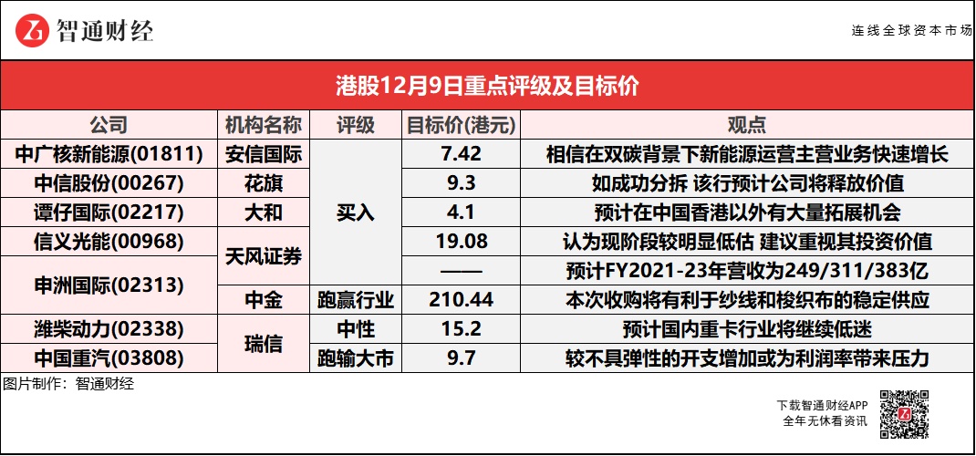 花旗下调中信股份(00267)2021财年盈利预测2%,上调2022/23财年盈利预测2%至6%。公司于9月初的股价较每股资产净值折让32%创年内新低,目前则扩大至49%。该行仍然认为中信管理层的新发展战略将扎实推进未来的盈利增长,而基于公司目前估值水平,出现投资价值。该行认为,中信股份早前建议分拆全资附属中信金属于上海证交所上市,如成功分拆,该行预计中信将释放价值,以及收窄每股资产净值折让,估计公司2022财年每股资产净值保持于14.7元不变。