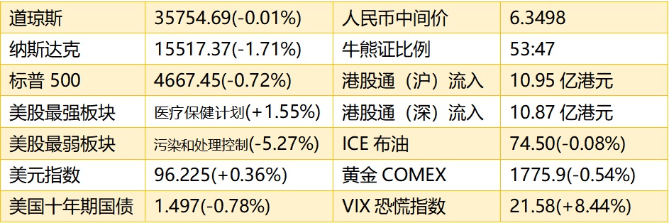 1.隔夜美股三大指数尾盘走弱,纳指跌1.71%,标普500指数跌0.72%,道指平收。港股ADR指数下跌,按比例计算,收报24016点,跌238.45点或0.99%。值得注意的是特斯拉收盘股价大跌6.10%,港股新能源车板块今日有压力。