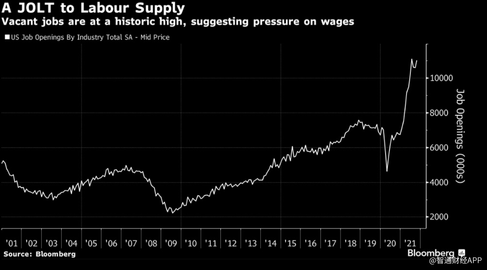 与此同时,美国10月JOLTS职位空缺1103.3万人,接近历史最高水平。公司似乎在填补职位空缺方面收效甚微,这意味着工人在工资谈判中的谈判力量要大得多: