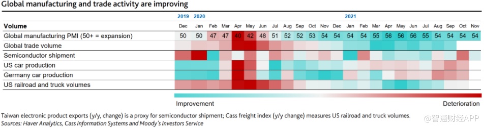 全球制造业和贸易活动也显示出改善迹象。美国制造业整体上处于扩张模式,铁路运输量也在上升。 然而,半导体出货量尚未持续增加,美国和德国的汽车生产也因此放缓: