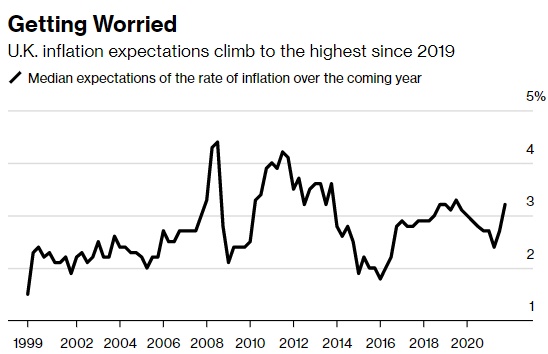 这项调查出炉之际,英国的通胀正处于10年来的最高水平,这主要是由于能源价格飙升、供应链问题以及解封后的需求增加。尽管英国央行预计明年物价上涨速度将放缓,但调查结果表明,对价格上涨的预期正变得更加根深蒂固。