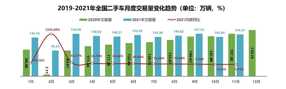 2021年1-11月二手车市场整体表现