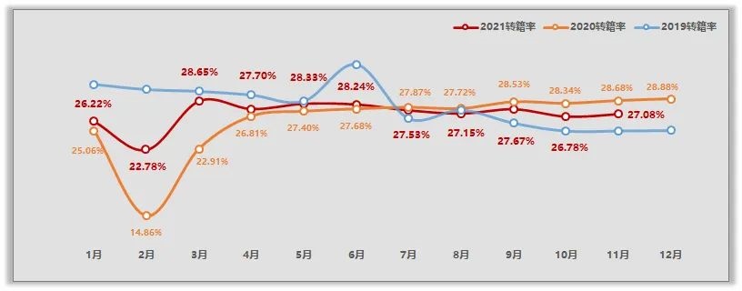 11月二手车转籍比例为27.08%,转籍比例环比上月增长了0.3个百分点,较去年同期下降了1.6个百分点,接近去年5月份水平。