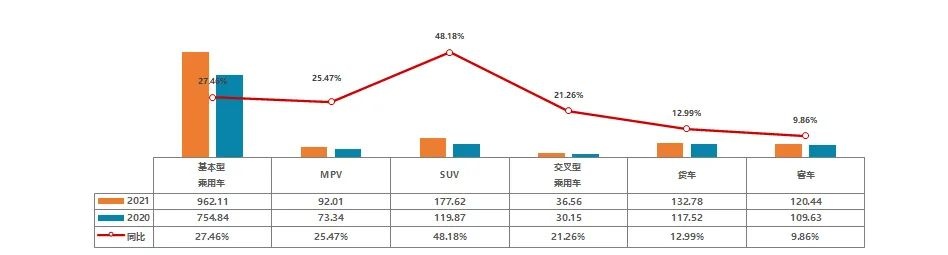从本月分车型交易情况来看,基本型乘用车共交易92.70万辆,环比增长6.97%,同比下降2.74%;SUV 共交易18.42万辆,环比增长6.18%,同比增长23.96%;MPV共交易8.60万辆,环比增长5.90%,同比下降4.19%;交叉型乘用车共交易3.57万辆,环比增长3.65%,同比下降1.78%。