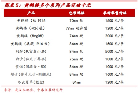 中国高端卷烟的涨价限制或已松动:香烟千元限价令有松动,黄鹤楼多个产品超1000元。香烟限价令源于2012年三公消费限制,2013年春节起严格控制卷烟价格在1000元/条以内。但近年卷烟价格逐渐松动,烟酒店能够买到千元以上的产品,黄鹤楼多个系列产品参考零售价格都超过1000元/条。