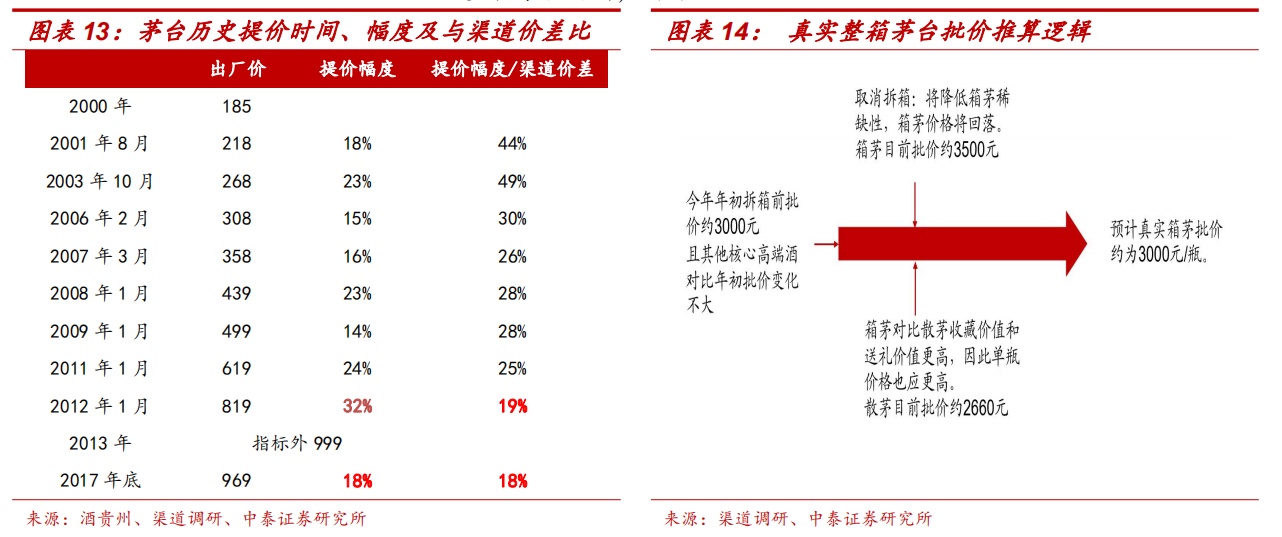 我们认为茅台如提出厂价,终端指导价有望提的更多。