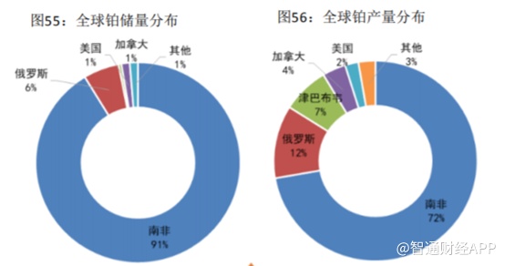 中国铂资源票赋较差,进口依赖度高。中国当前已查明铂族金属总储量仅400吨,2019年总进口量/消费量分别为714/72吨,进口依赖度达到993%。南非是中国铂金属主要进口国家。