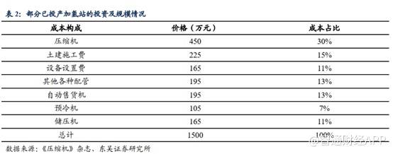 4)加氢站又是一笔不小的投入。除了前面提及的问题以外,和电动车相比,而供电网络是现代社会最基本、最成熟的基础设施。虽然安装充电桩,尤其是大规模建设公共充电站,依然对电网有着不小的负荷压力,但终究是可以基于一切现有供电基础设施的。充电网络建设,更多是充电桩、站、场等终端的成本,并不需要单独为充电设施另铺设一套供电网络。而氢能源汽车必须重新修建加氢站,据东吴证券研究显示,加氢站的投资价格高达1500万元,相当于传统加油站的数倍,除建设成本外,还面临着设备维护、运营、人工、税收等费用。