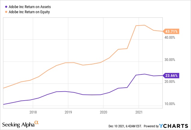 由于净利润率的增长和资产周转率的增长,ROA达到22.33%。该公司为股东带来了44.70%的股本回报率。