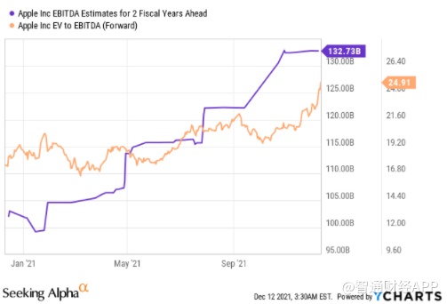 此外,EBITDA 和每股收益的预期增长证明,即从长期投资的角度来看,苹果仍然是一个有趣且被低估的目标。