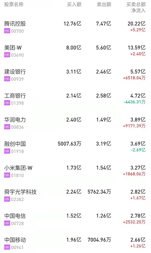 此外,建设银行(00939)获净买入6518万港元。而工商银行(01398)遭净卖出4436万港元。