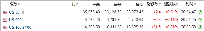 科技股方面,苹果(AAPL.US)盘前涨1.25%,Meta Platforms(FB.US)盘前涨0.28%,亚马逊(AMZN.US)盘前涨0.31%,微软(MSFT.US)盘前涨0.15%。