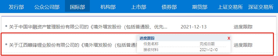 证监会:赣锋锂业(01772)境外增发股份申请已获接收材料