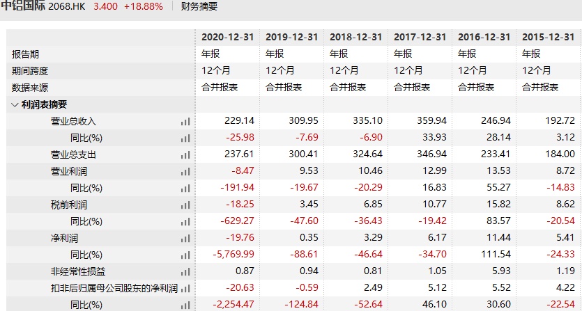 从上述数据的表现来看,中铝国际近年来的成长性实在不算理想。