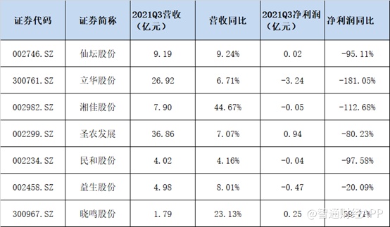 wind数据显示,在A股7家肉鸡养殖上市公司中,第三季度实现营收累计为91.67亿元,净利润累计亏损2.59亿元。