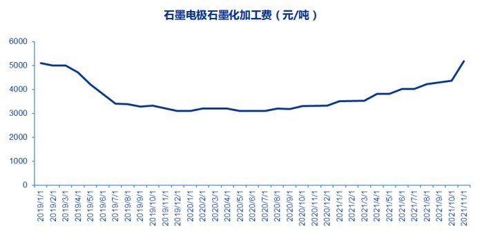 负极石墨化虹吸效应,目前负极石墨化加工费2.5万/吨,石墨电极加工费5200元/吨,一般2-3吨石墨电极的石墨化可以转产成1吨负极石墨化,目前加工费差距较大将导致较多石墨电极产能逐渐转产为负极石墨化代加工。