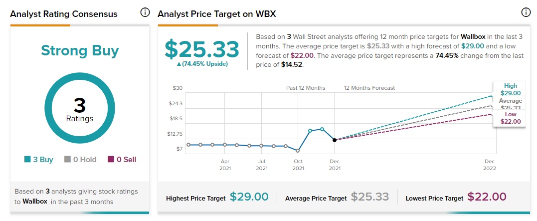 在拥有华尔街众多知名分析师的评级平台TipRanks上,Wallbox的共识评级为“强力买入”,平均目标价为25.33美元,甚至比Baird的目标价更乐观,暗示未来12个月将较目前14.52美元的交易价格上行空间超70%,不过参与该股评级的分析师只有3位。