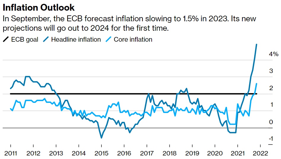 大多数经济学家预计,欧洲央行最早要到2023年才会首次加息,而货币市场却押注欧洲央行将于2022年12月加息10个基点。