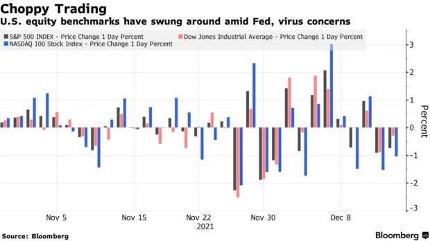 由于对未来政策的焦虑和迅速蔓延的Omicron变种,主要平均指数波动更大。虽然逢低买入的买家们限制了整体损失,但市场的不安情绪越来越严重。纳斯达克100指数在过去13个交易日下跌了7次,每次跌幅都超过了1%。