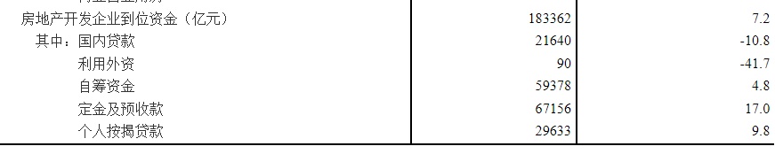 1—11月份,房地产开发企业到位资金183362亿元,同比增长7.2%;比2019年1—11月份增长14.2%,两年平均增长6.9%。其中,国内贷款21640亿元,下降10.8%;利用外资90亿元,下降41.7%;自筹资金59378亿元,增长4.8%;定金及预收款67156亿元,增长17.0%;个人按揭贷款29633亿元,增长9.8%。