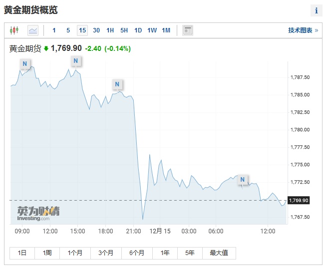 智通财经APP获悉,由于美国通胀居高不下,市场普遍预期美联储将在即将到来的12月利率会议上宣布加速缩减购债、乃至进一步释放加息的信号,金价应声下跌。