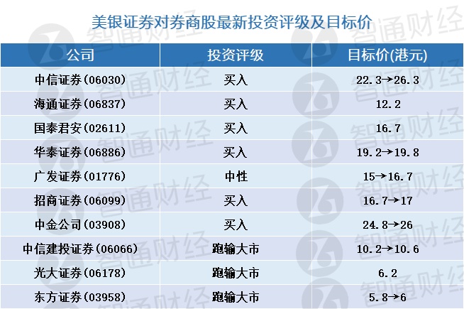 智通财经APP获悉,美银证券发布研究报告称,偏好中资券商H股,首选中信证券(06030)及华泰证券(06886),认为他们的机构业务高于平均水平;另予中金公司(03908)、招商证券(06099)、国泰君安(02611)及海通证券(06837)“买入”评级。