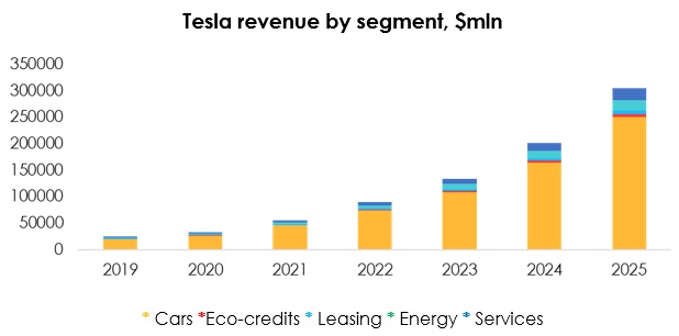 Invest Heroes预计,到2025年,特斯拉的营收将达到3400亿美元,其中电动汽车营收占比高达87%。