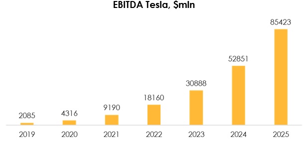 根据埃隆·马斯克的计划,特斯拉将在中国和德国加大力度提高电动汽车生产规模,并扩大其产品线。Invest Heroes预计到2025年,特斯拉EBITDA将达到约850亿美元的水平。而在这850亿美元中,能源类业务将只占约30亿美元,或者说占比仅为3.5%。