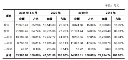 据招股书披露,2018年、2019年、2020年、2021年上半年的公司营收分别为2.25亿元、2.53亿元、4.81亿元、3.45亿元,最近三年营业收入复合增长率为46.27%,业绩增长迅速。同期对应的利润分别为686.23万元、-3334.40万元、9350.50万元、4377.85万元。