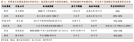 最后,就投资回收期来看,由于植发无需大型设备,据测算单店投资仅需约400万元,头部机构可14个月现金回本,这也意味着相比于其它消费医疗领域,植发的初始投入资金更少、投资回报周期更短,因而更适合快速扩张。