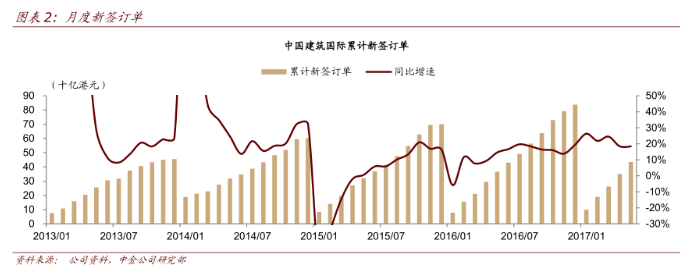 中国建筑国际发布订单数据:2017 年 1~5 月公司新签订单 434亿港元,同比增长 18.4%。