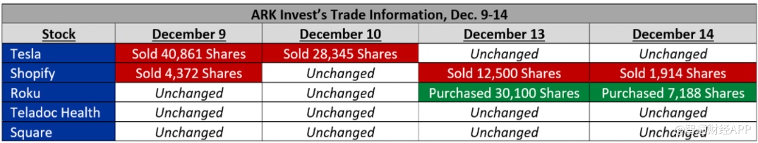 根据ARK公布的交易记录,伍德实际上并没有购买Roku以外的任何高信念股票,而是抛售了特斯拉和Shopify的股票:
